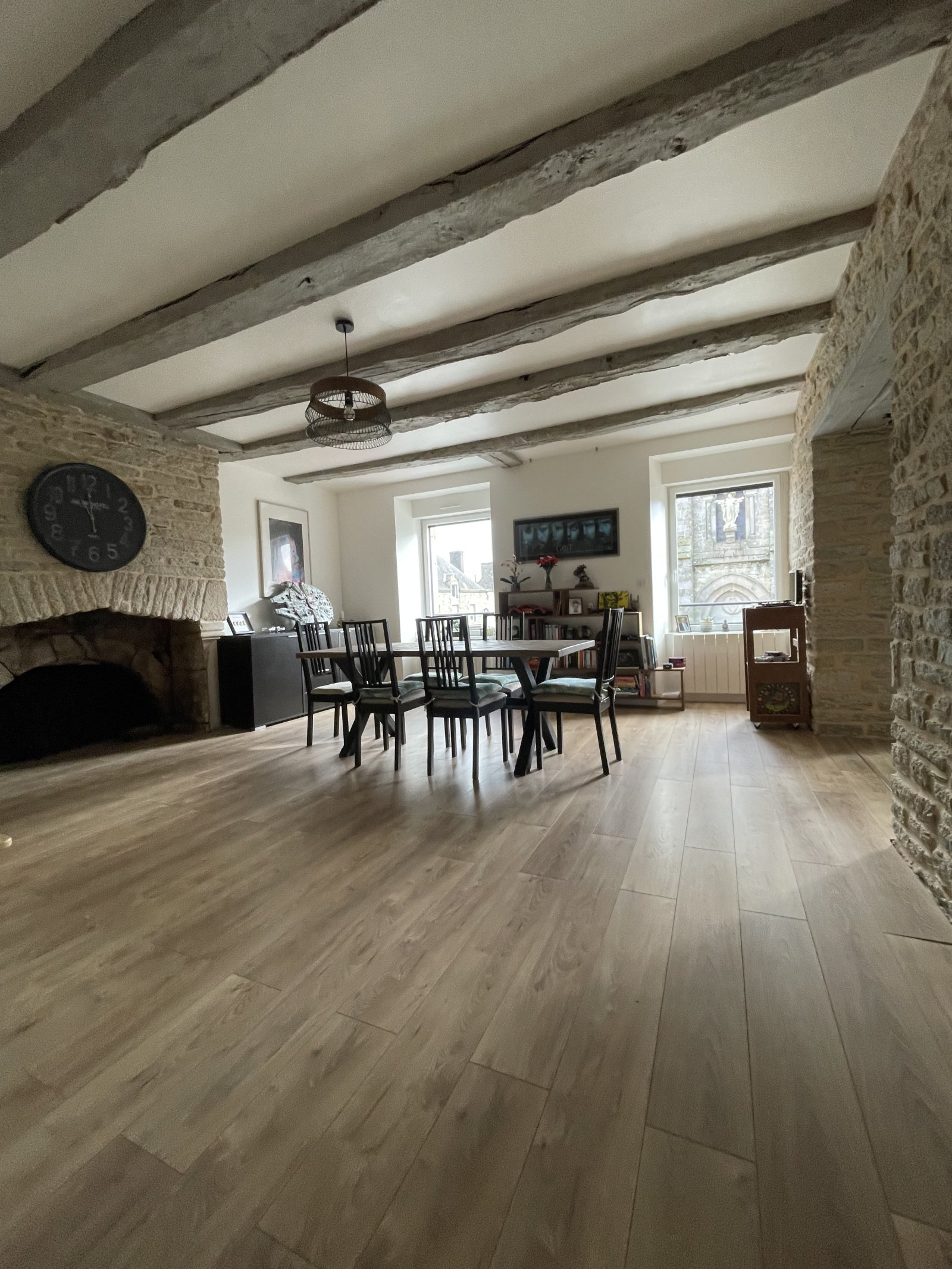 Au premier étage, avec entrée indépendante au commerce, un appartement sur deux étages d'environ 125m² comprenant : entrée avec placard, cuisine aménagée et équipée, salle à manger, salon, suite parentale, wc. Au deuxième étage : 3 chambres avec placards, salle d'eau, wc, pièce rangement.Cave en sous-sol, garage attenant de 60m². Le tout sur un terrain de 295 m² avec cour intérieure et terrasse aménagée.