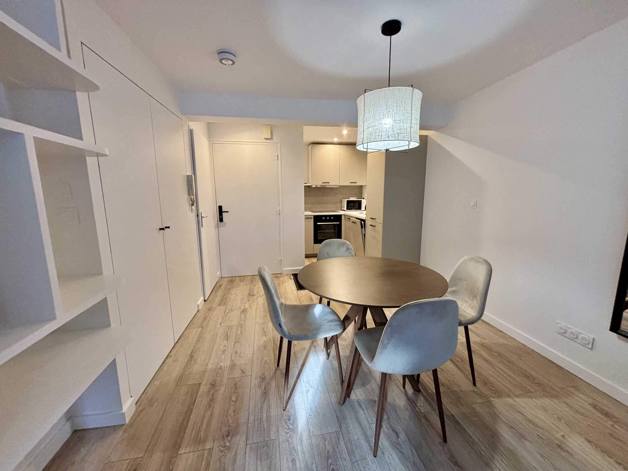 Au 2ème et dernier étage d'un immeuble ancien avec accès sécurisé, cet appartement entièrement rénové propose un espace de vie aménagé de placards et d'un coin cuisine entièrement équipé (four, plaques, réfrigérateuir, lave vaisselle).