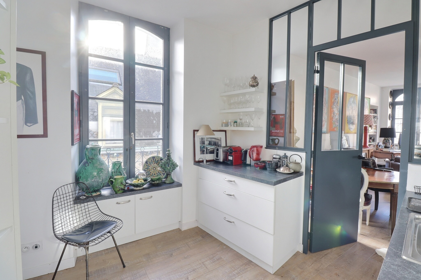 Au charme indéniable, cet appartement atypique offre une pièce de vie de 33 m2, lumineuse, exposée Sud Ouest avec une vue imprenable sur la place de la Mairie. L'espace cuisine, aménagé et équipé, est élégamment intégré derrière une verrière qui s'insère harmonieusement dans le volume principal. II permet de profiter pleinement de l'espace de vie sans en être isolé.