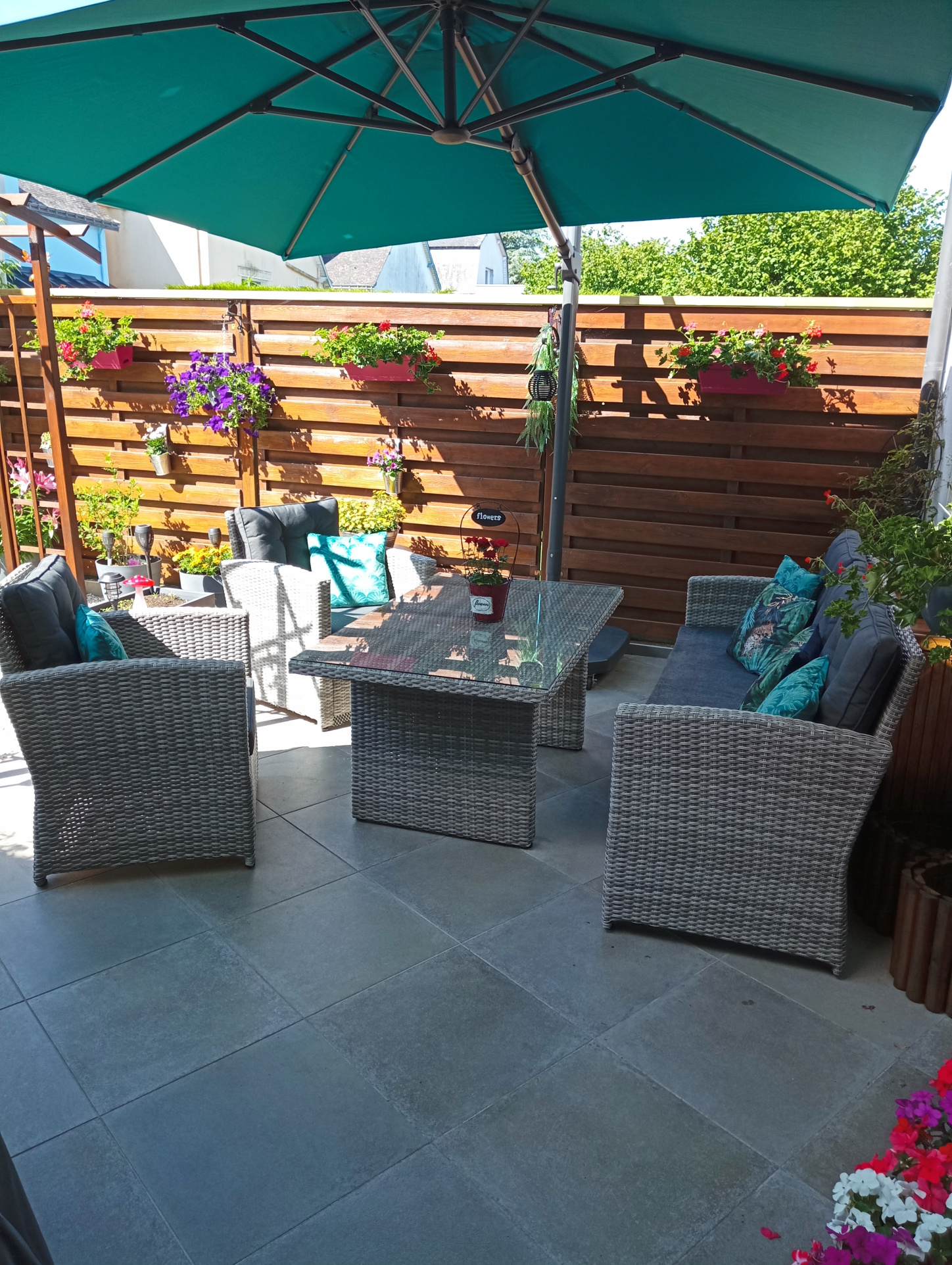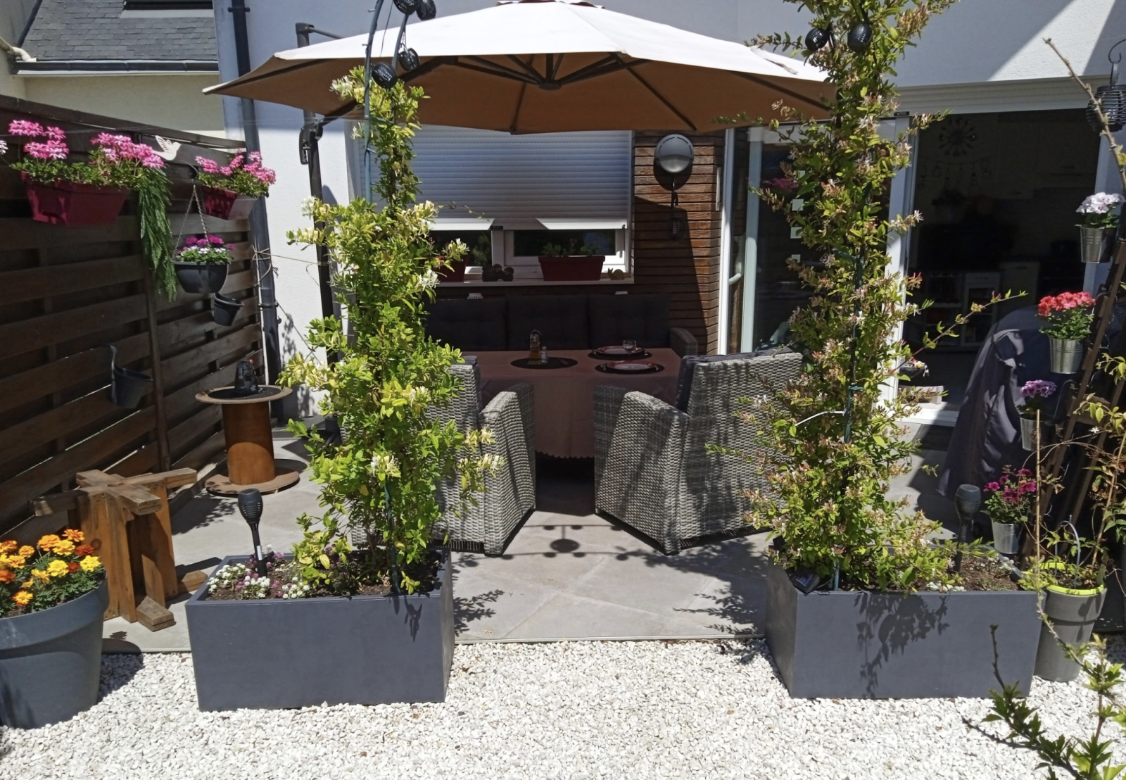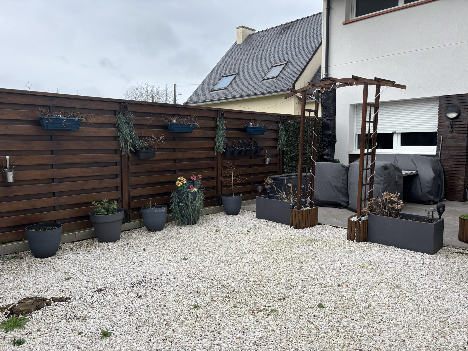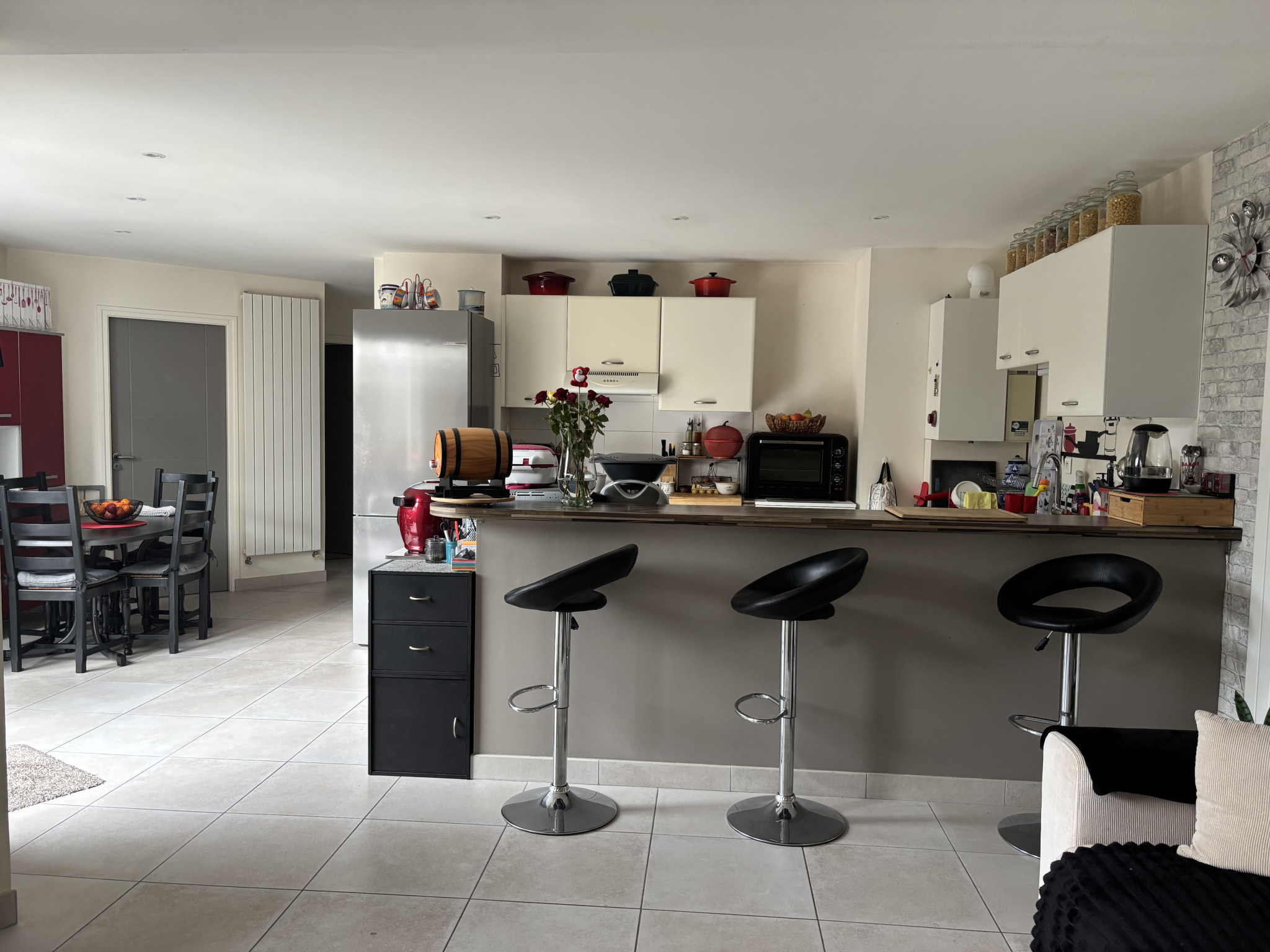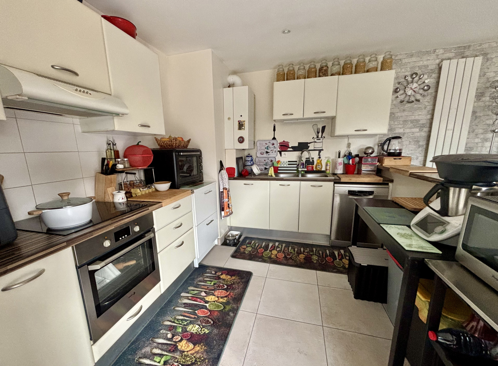 Chauffage par chaudière gaz et panneaux photovolatïques pour la production d'eau chaude. Volets roulants électriques.