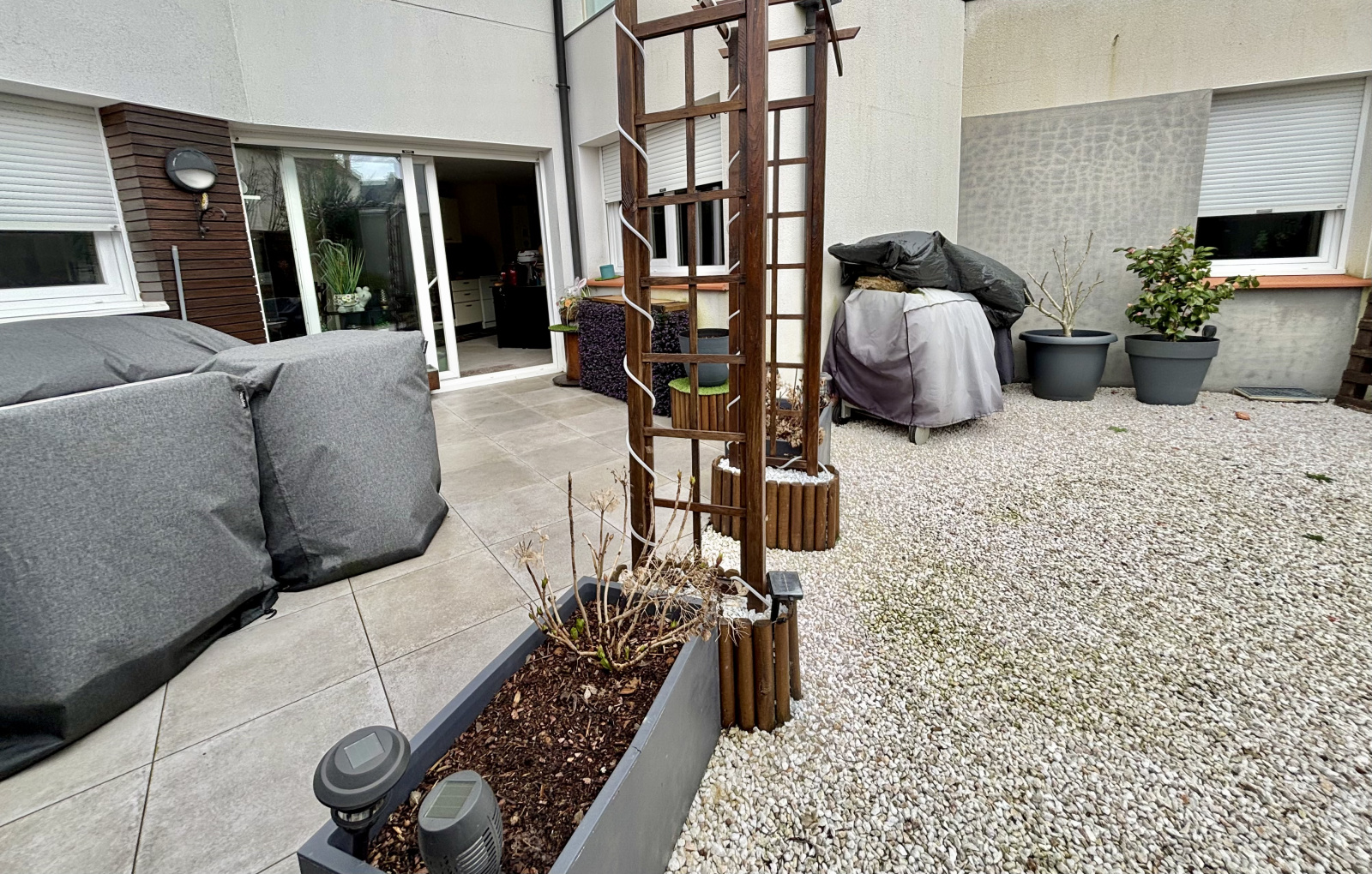 Située dans une petite copropriété récente composée de 2 appartements, ce bien situé au rez-de-chaussée propose une belle surface habitable et se compose d'une entrée avec placards et d'une pièce de vie de 40 m2 avec cuisine ouverte aménagée/équipée donnant accès à une terrasse et un jardinet de 50 m2 sans vis à vis.