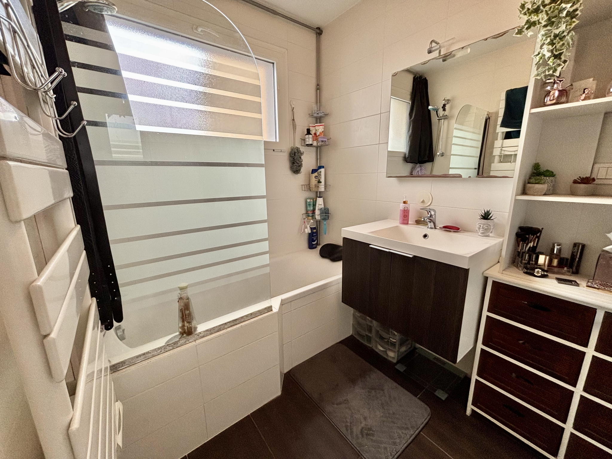 L'appartement propose 3 chambres, dont 2 avec placards de rangement, une salle de bain avec fenêtre et un wc indépendant.