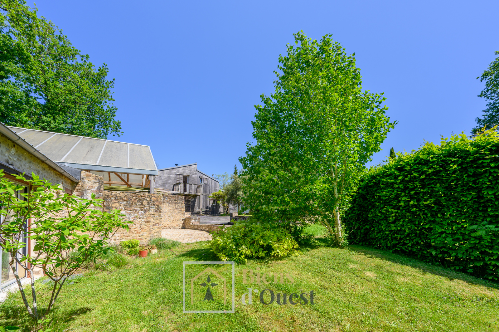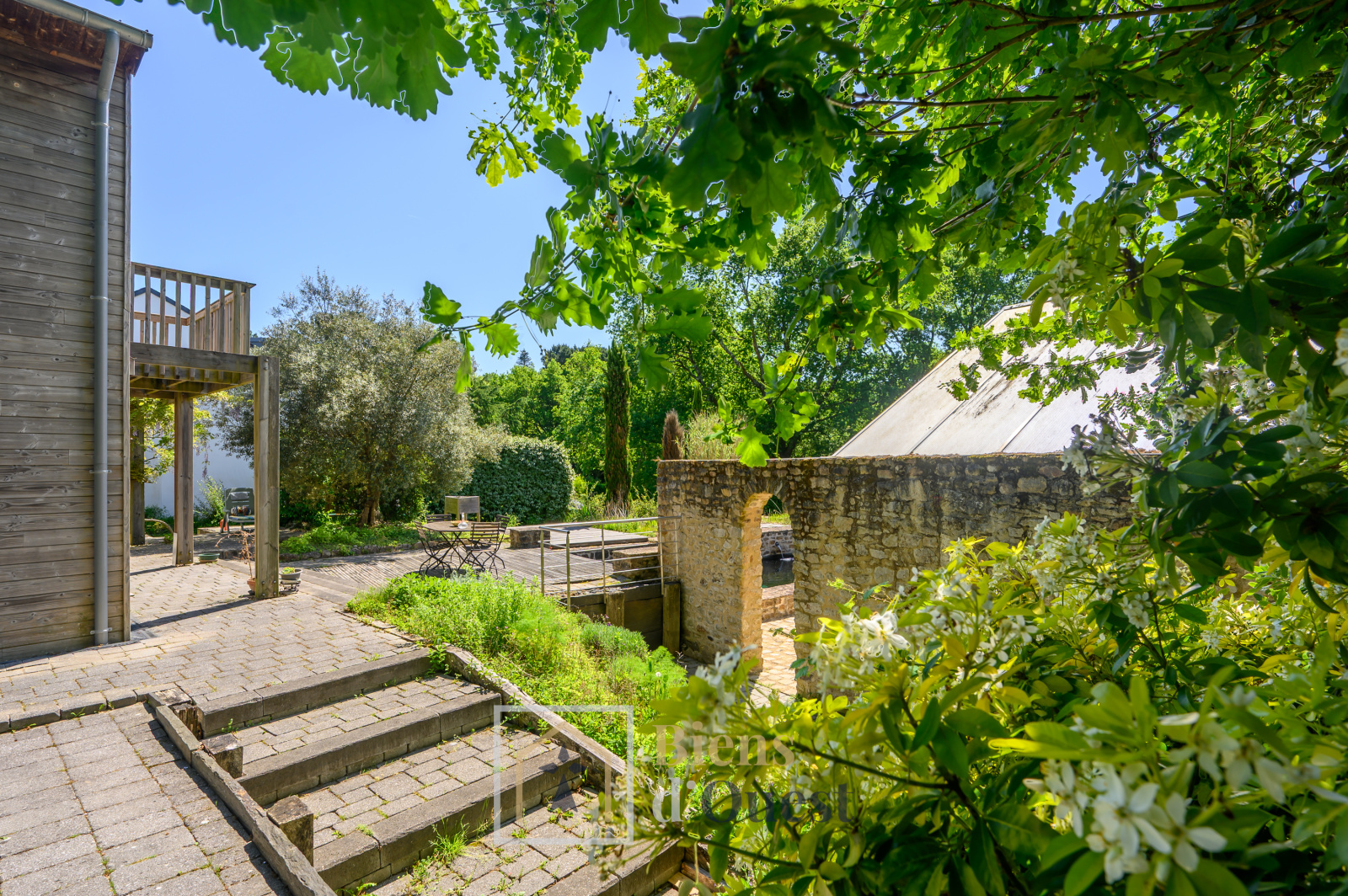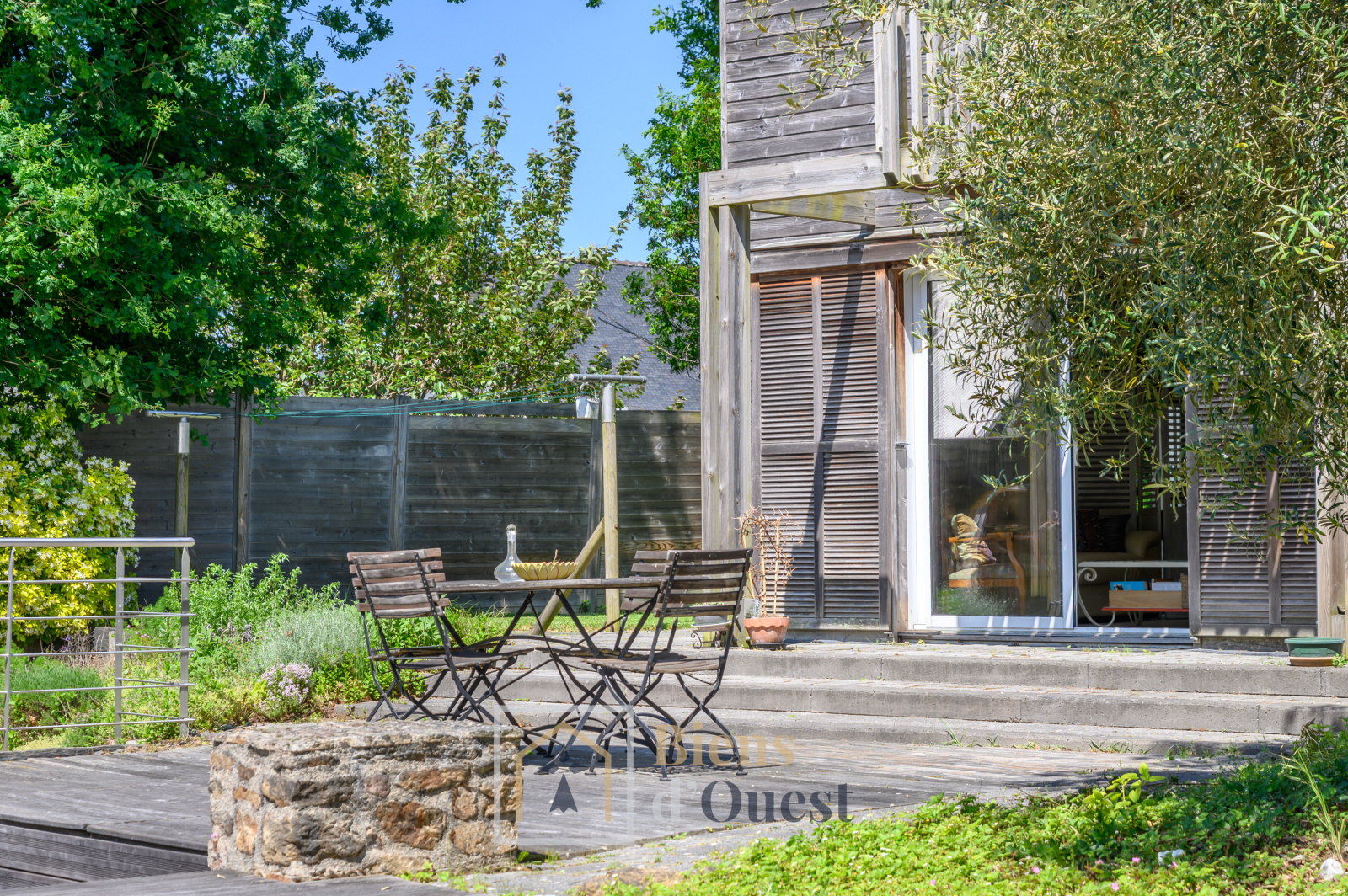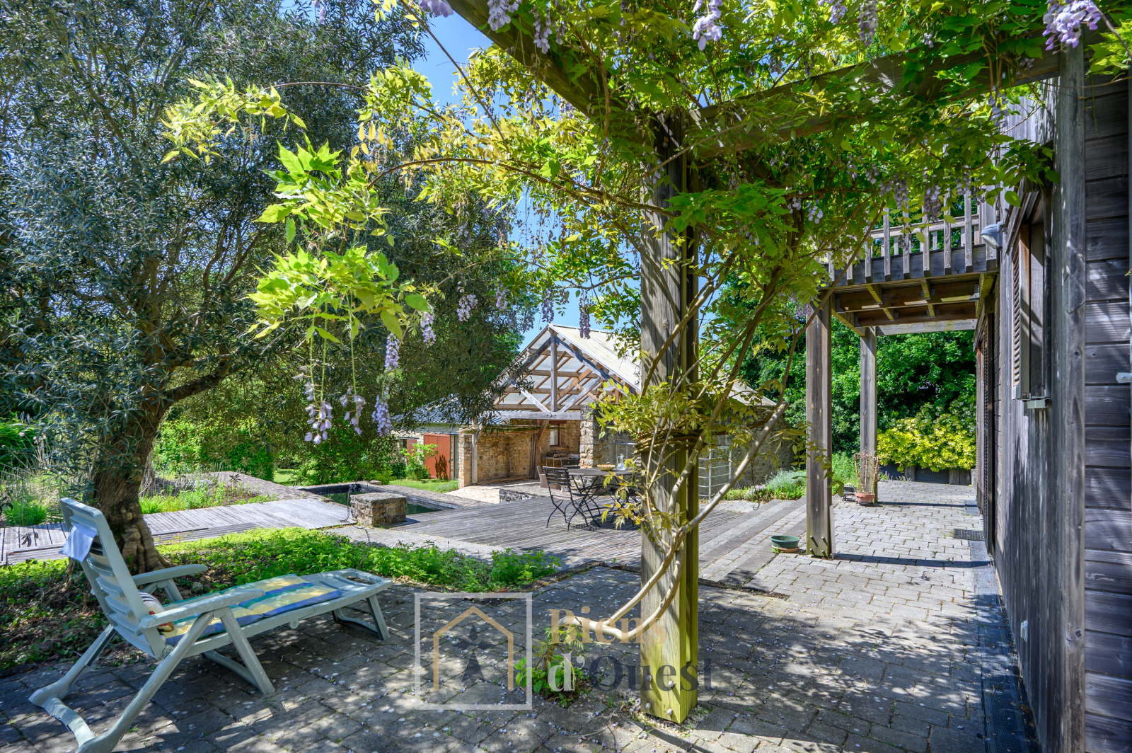 Le jardin propose une végétation méridionale composée de cyprès, d'oliviers et d'un mélange de pierre et de bois qui lui confère une atmosphère naturelle et élegante.