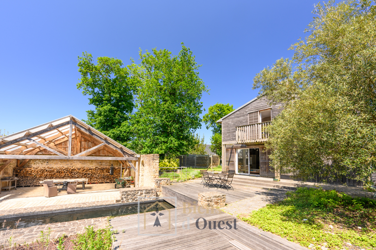 La parcelle, entièrement close avec portail électrique, dispose d'un carport pour le stationnement des véhicules et d'un cellier extérieur pour les vélos et outils de jardin. Une grande dépendance en pierres, permet de bénéficier d'un espace couvert pour les déjeuners ou autres activités face au bassin. Elle se prolonge par un espace atelier de 23 m2 et par un appenti.