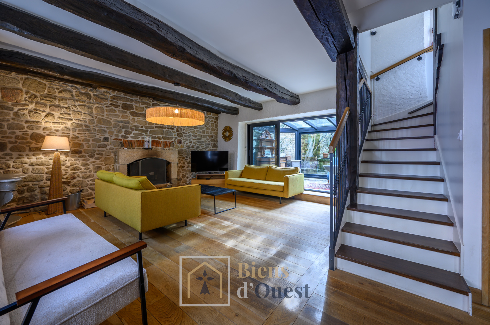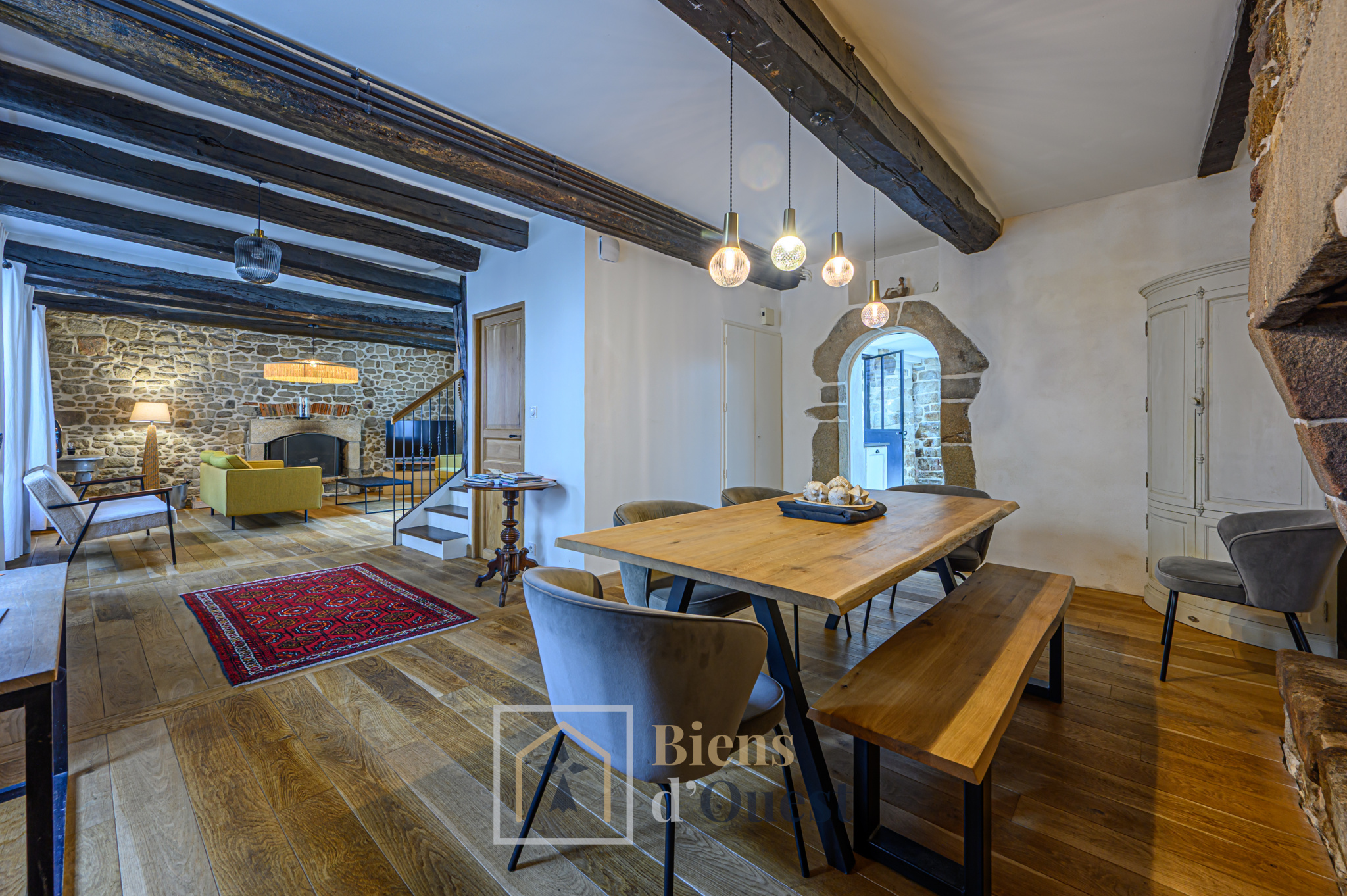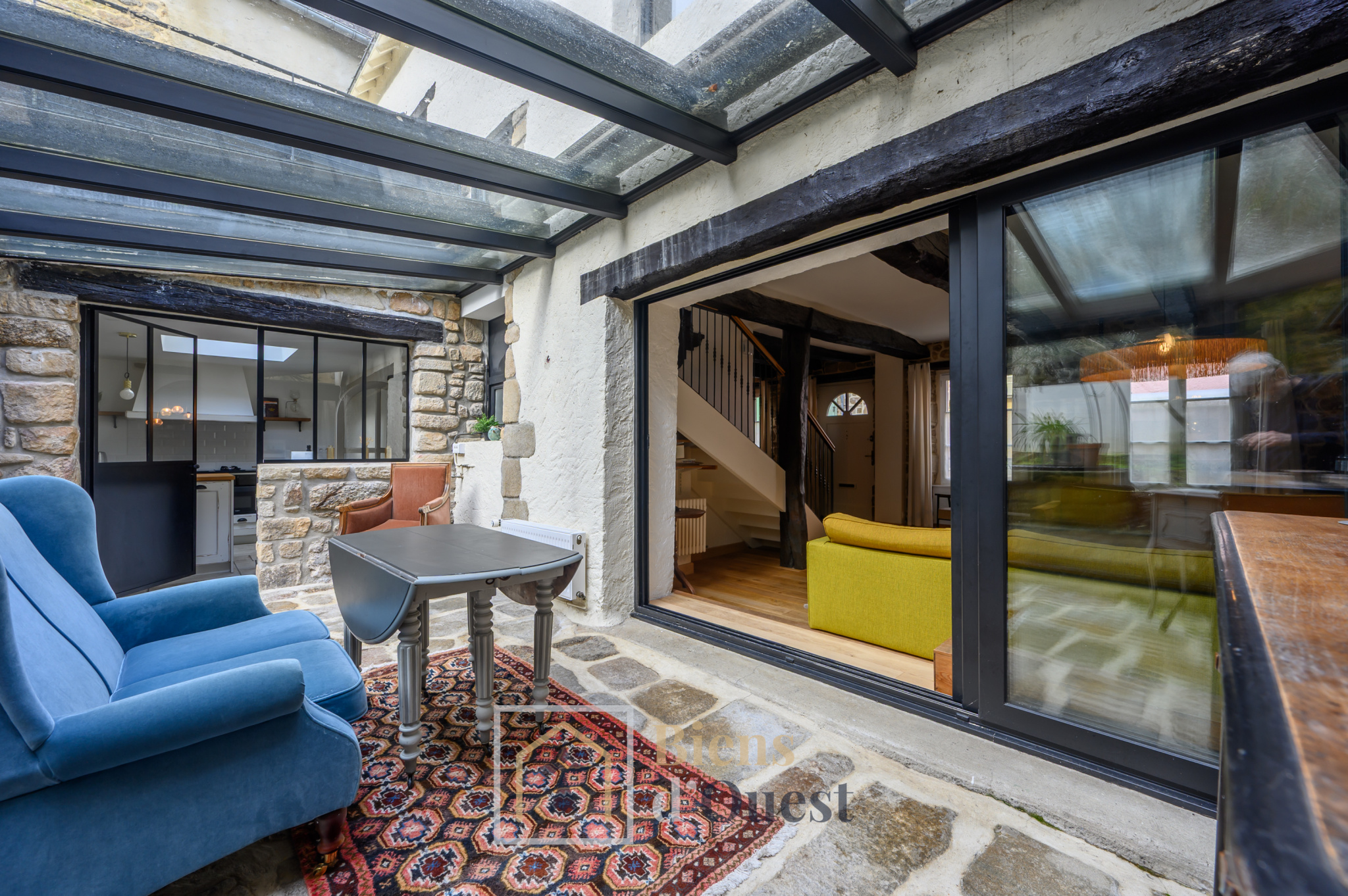 Derrière sa façade authentique, la maison dévoile un espace de vie sublimé par deux belles cheminées d'origine créant une atmosphère noble et chaleureuse. Le salon s'ouvre, au travers d'ne véranda, sur un petit jardin intimiste exposé sud et clos de murs en pierre, à l'abri des regards.