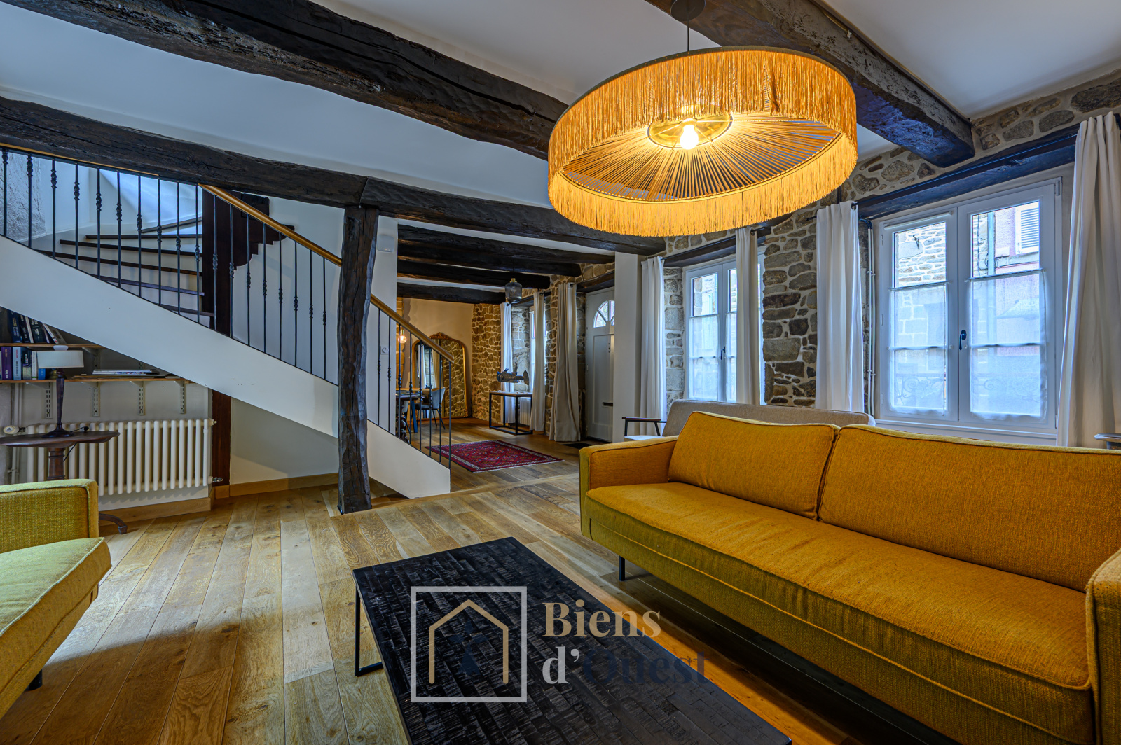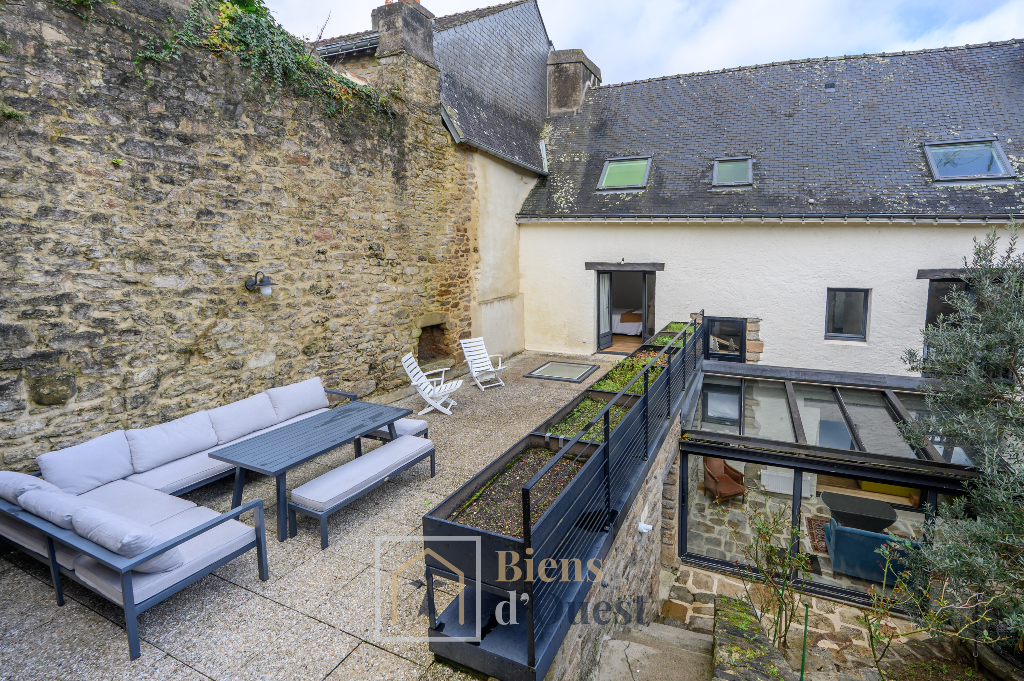 Situé au coeur du centre ville d'Auray, à quelques pas du port de Saint Goustan et de la place des Halles, une remarquable maison en pierre du XVII rénovée proposant 165 m2 habitables avec jardinet, terrasse et garage.