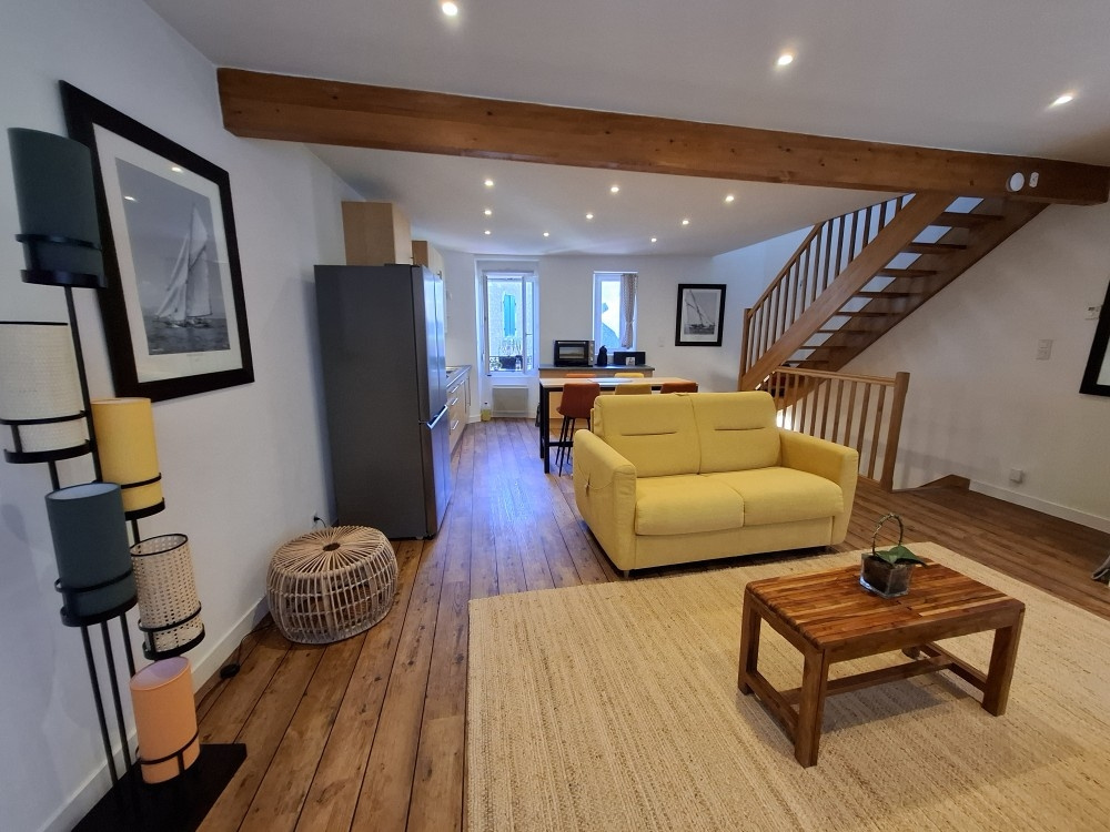 Localisé à quelques mètres du Port de Locmariaquer, cet appartement en duplex de 54 m2, est situé au 1er et 2 ème étage d'un petit immeuble ancien ne comportant que 2 lots.