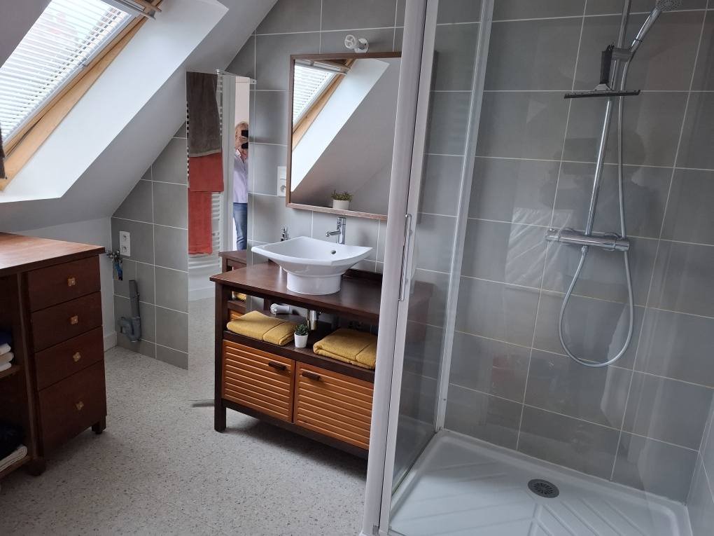 Un escalier escamotable permet d'accéder à un grenier de 15 m2 pour le rangement.