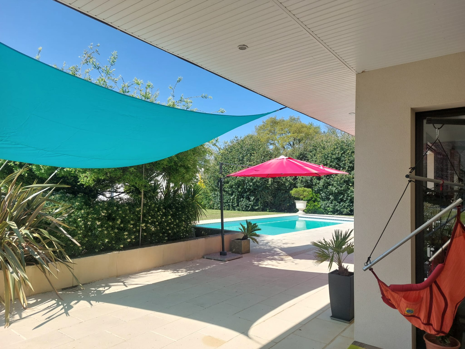 La parcelle, entièrement close et paysagée propose une piscine chauffée de14,5m x 4m avec filtration par électrolyse et tapis de fermeture sécurisé.