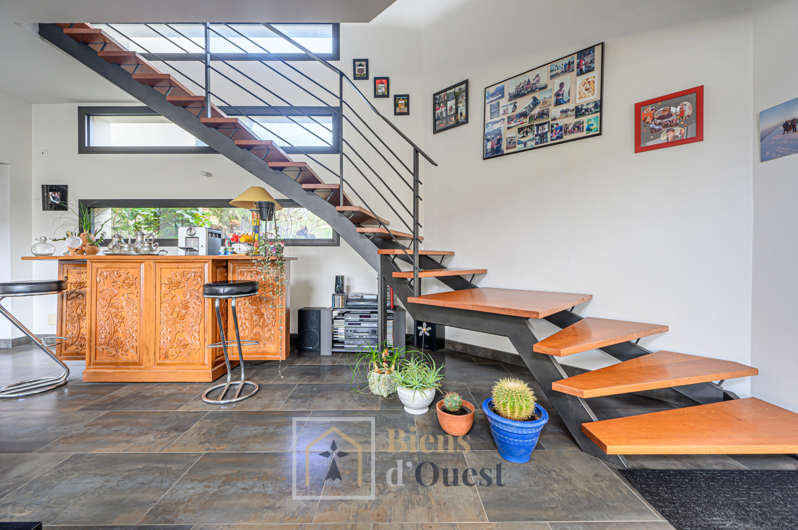 Construite en 2008, cette maison d'architecte propose un vaste espace de vie de plain pied disposant d'une entrée, d'une pièce de vie déplafonnée de plus de 75 m2 ouverte sur la piscine, avec cheminée insert et complétée d'un espace salon/bibliothèque intimiste. La cuisine aménagée et équipée avec un ilot central se prolonge d'un espace extérieur couvert. Une arrière cuisine complète l'ensemble et permet l'accès à une cave à vins en sous sol.