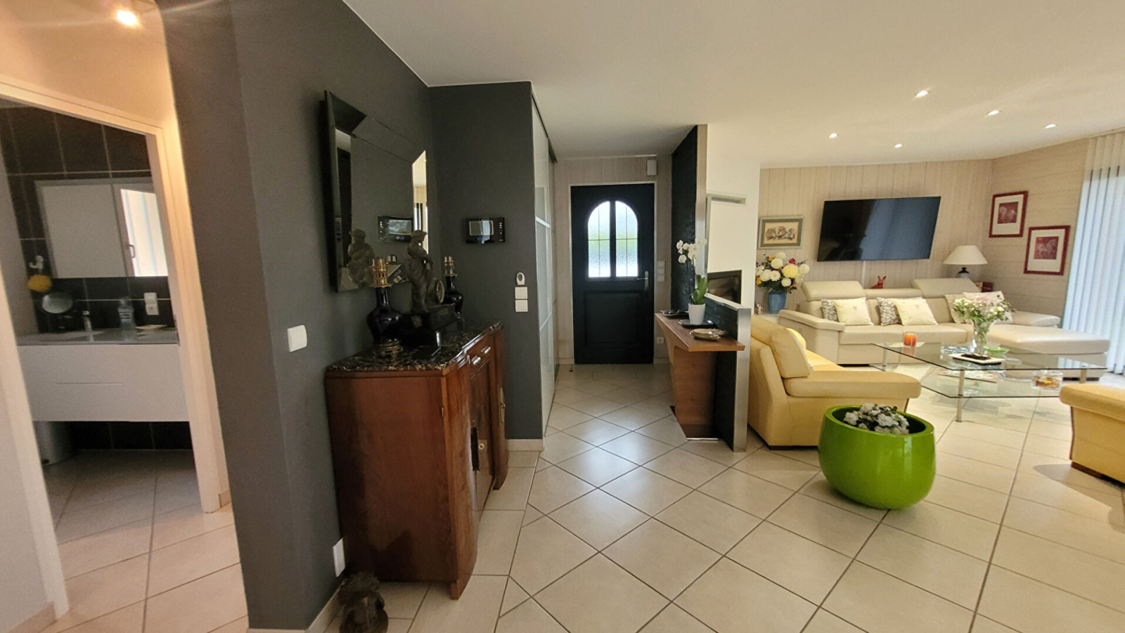 entree et cheminée insert, Exposition : S, Sol : Carrelage